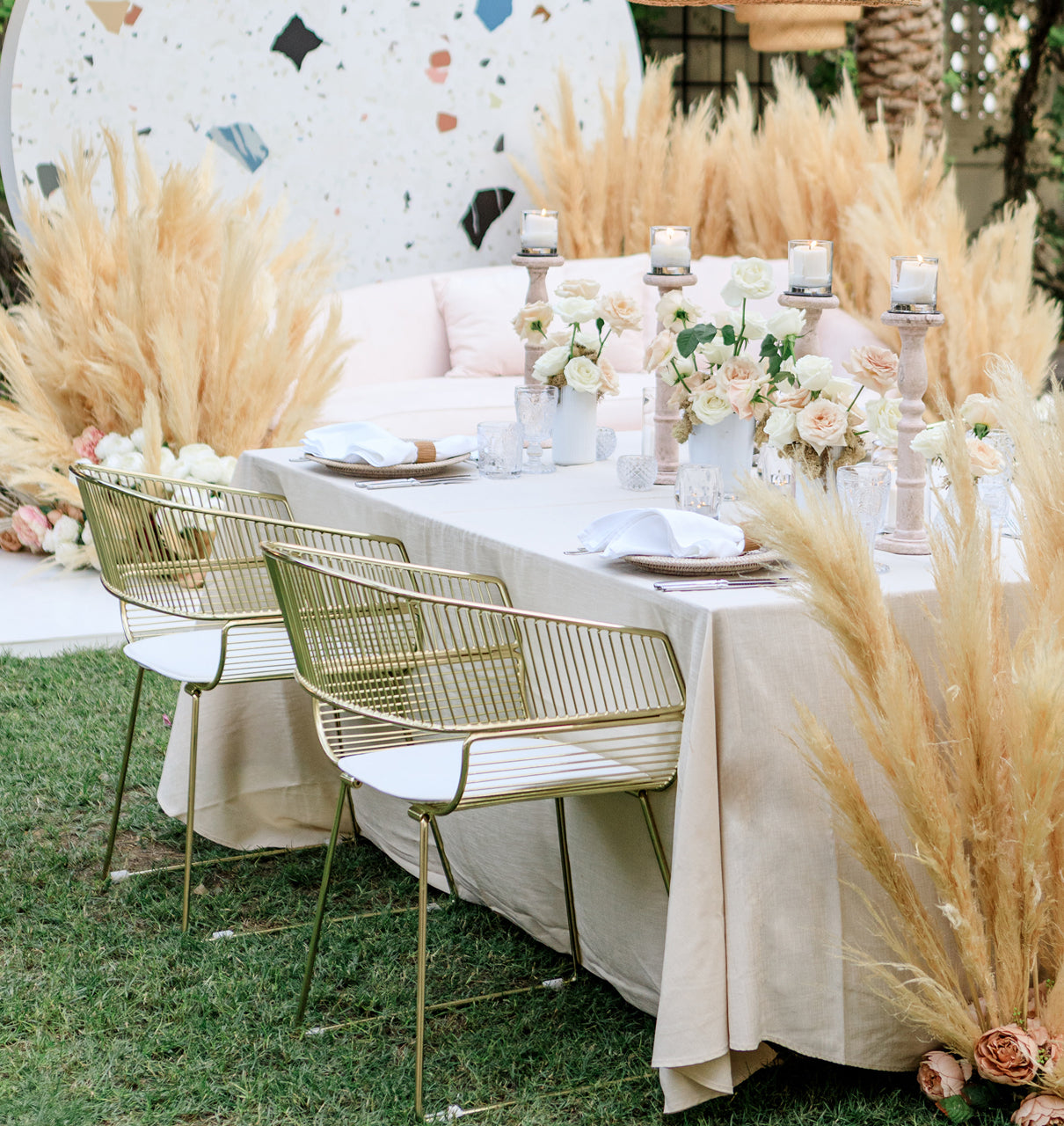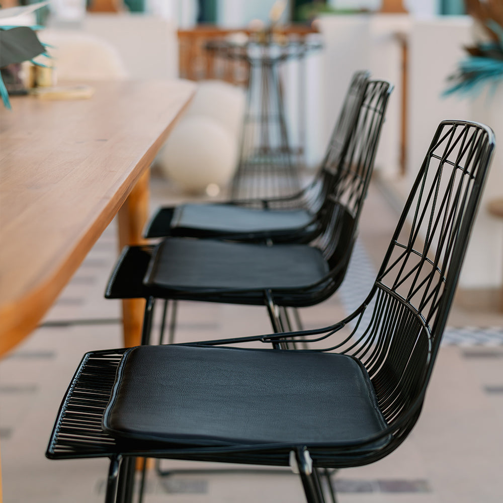 Sleek and Stylish Wire Barstools Available in Opulent Gold.